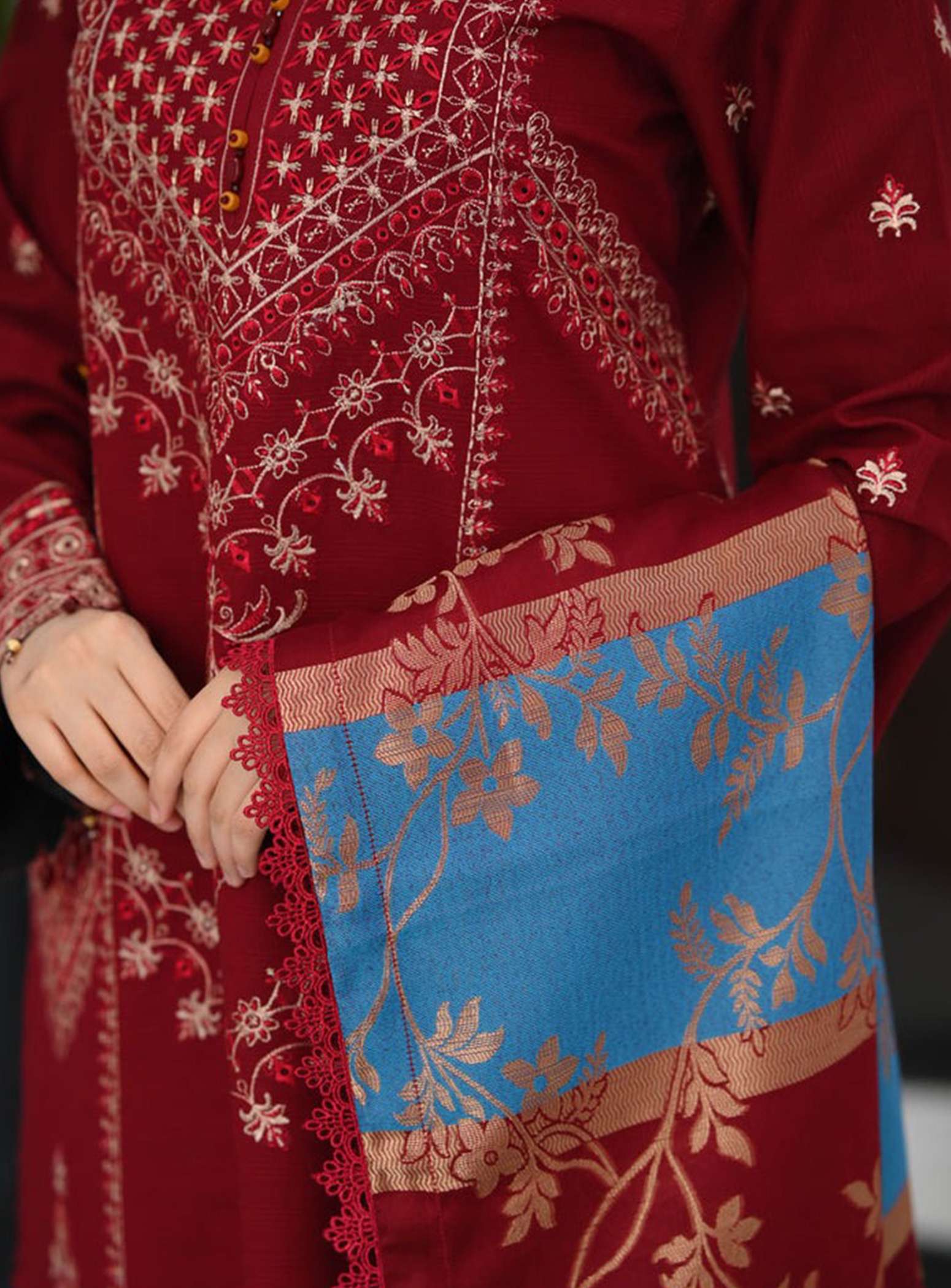 Step into elegance with the Haya Emb 3-Piece Suit, crafted from premium soft cotton and adorned with intricate embroidery. This timeless maroon ensemble offers both comfort and sophistication β perfect for casual outings or festive gatherings.