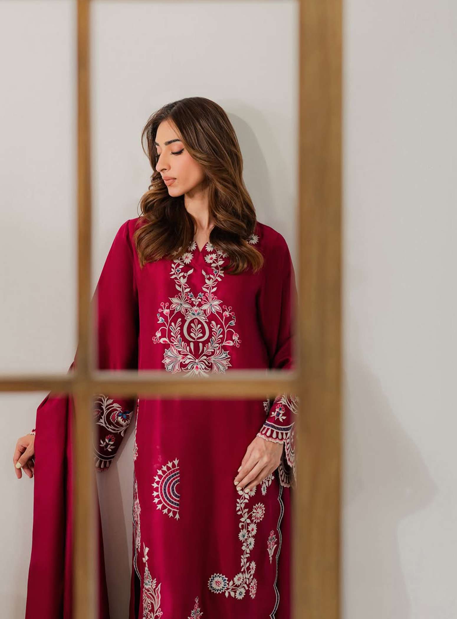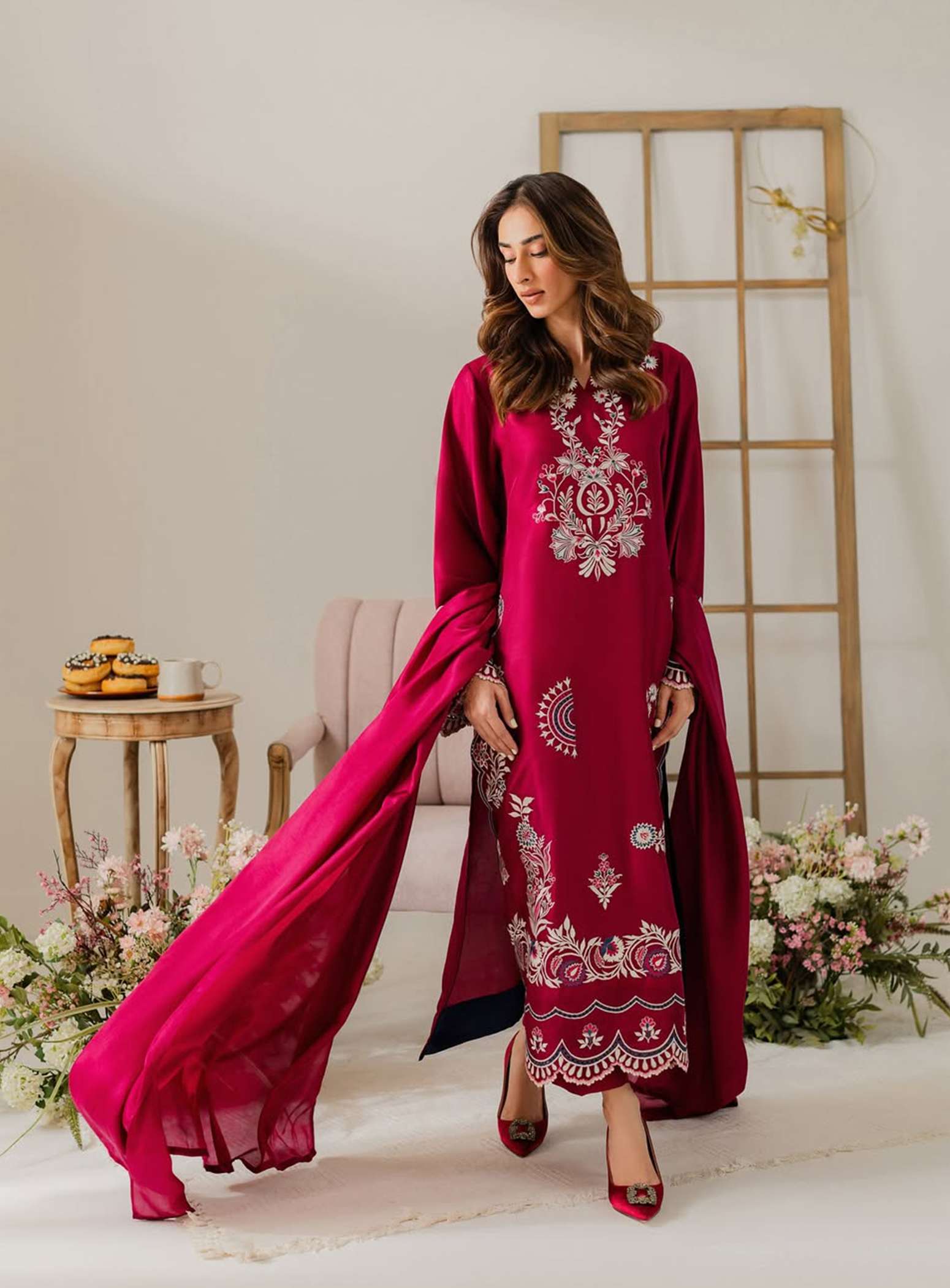 Radiate elegance and charm with Maisha, a beautifully embroidered 3-piece outfit that perfectly blends luxury with comfort. Crafted from premium linen fabric, this stunning pink-purple ensemble features a long embroidered shirt, standard-fit trousers, and a graceful dupatta that completes the look with sophistication. Ideal for festive gatherings, casual outings, or evening wear — Maisha brings timeless beauty to every occasion.