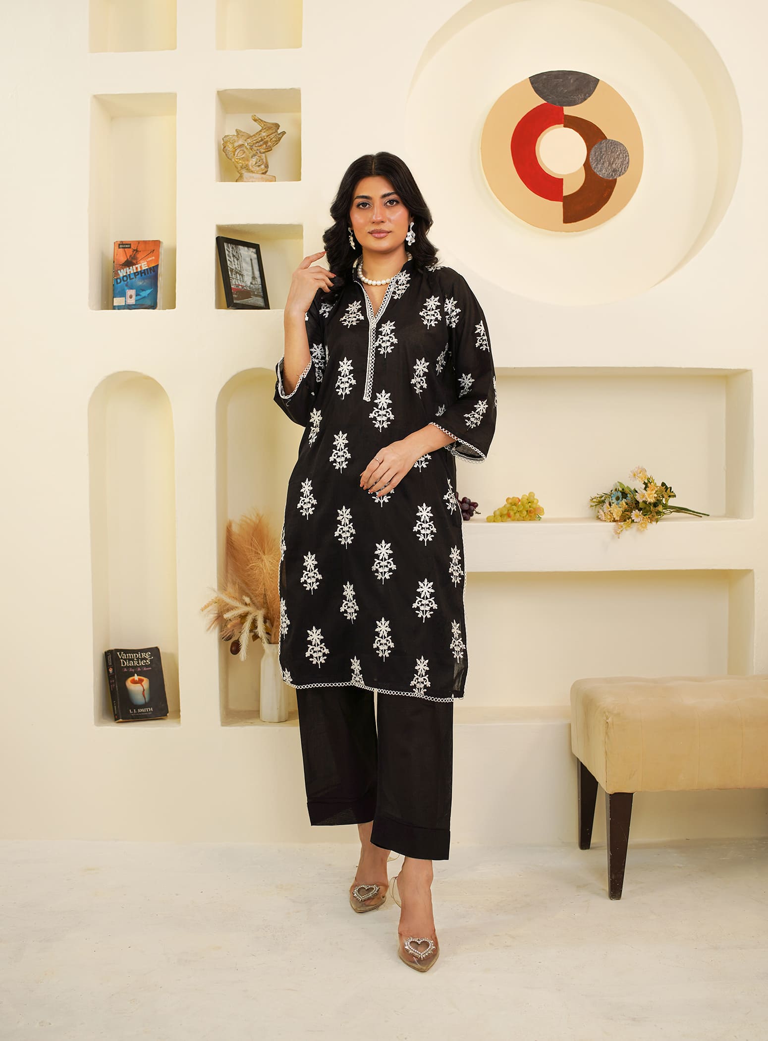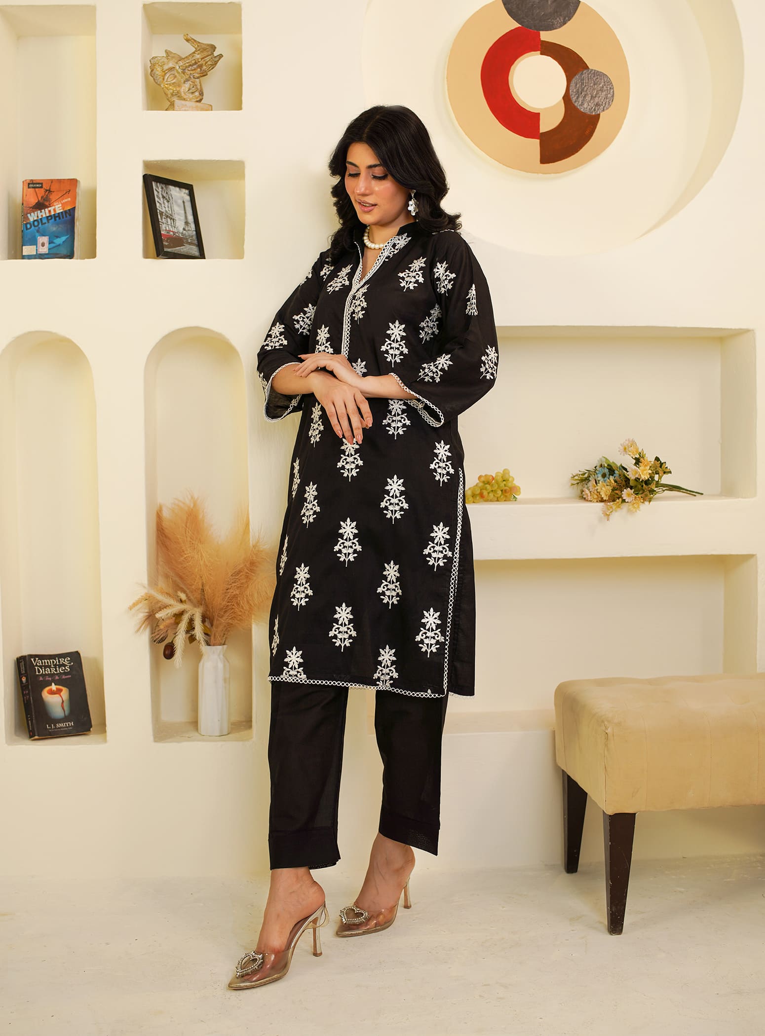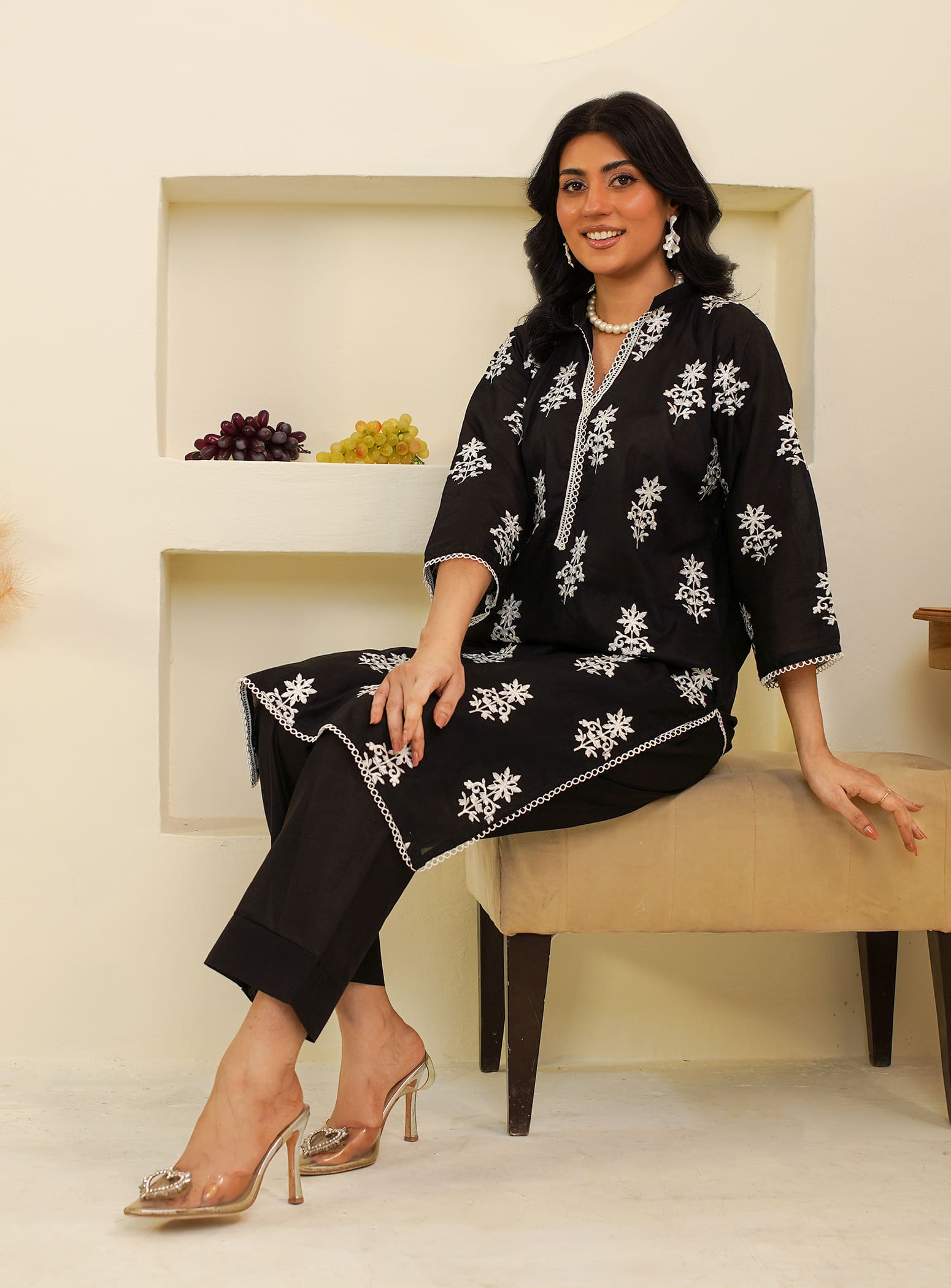 A timeless black outfit that defines grace and sophistication. This beautifully embroidered straight-cut kurta, paired with a matching trouser, offers breathable comfort and effortless elegance — perfect for your everyday summer look. ✨