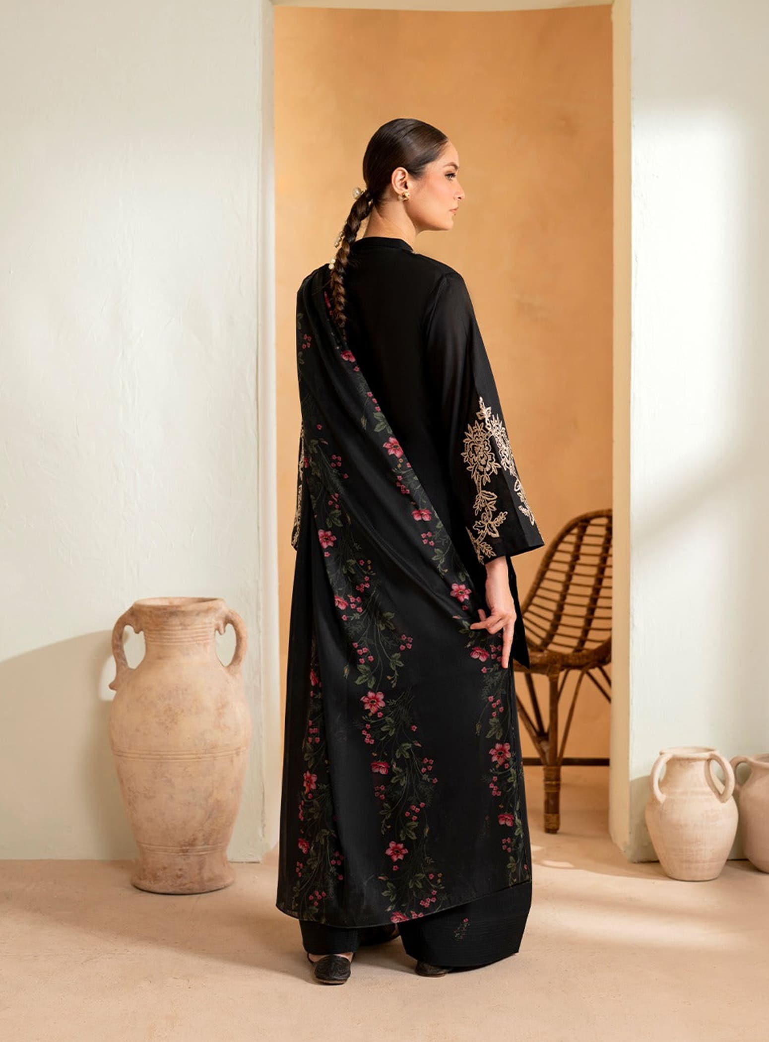Embrace the charm of midnight elegance with Husn-e-Raat, a beautifully crafted 3-piece embroidered cotton suit. Designed in a rich black tone, this short kurta set blends traditional grace with contemporary style. The chiffon dupatta adds a flowy, feminine touch, making it an ideal choice for daily sophistication and summer comfort. ✨