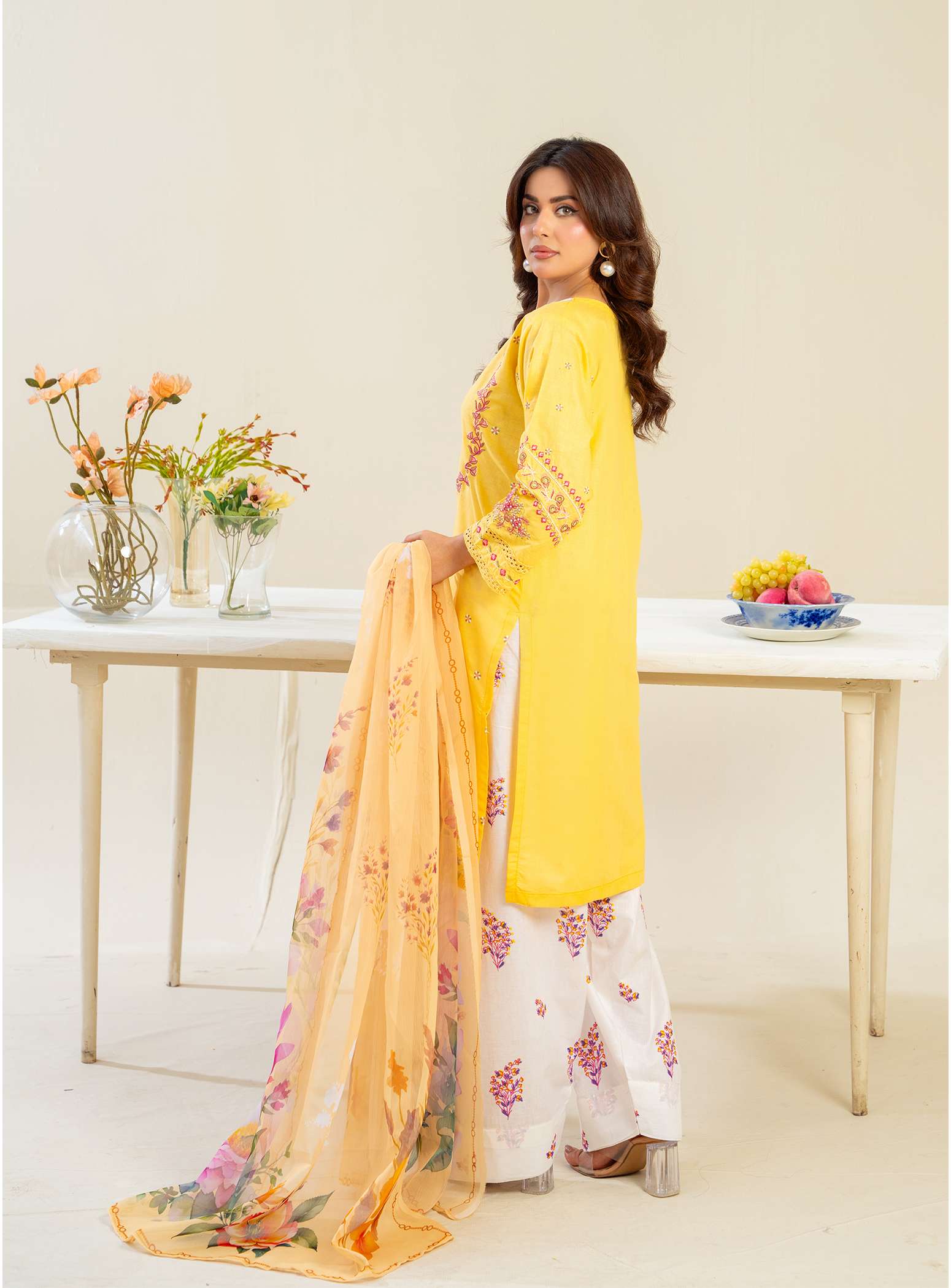 Refresh your summer wardrobe with the Blossom 3PC Cotton Suit, a radiant blend of comfort and charm. Crafted from premium lightweight cotton, this soft mango-lemon outfit embodies breezy elegance — perfect for sunny days and casual gatherings.