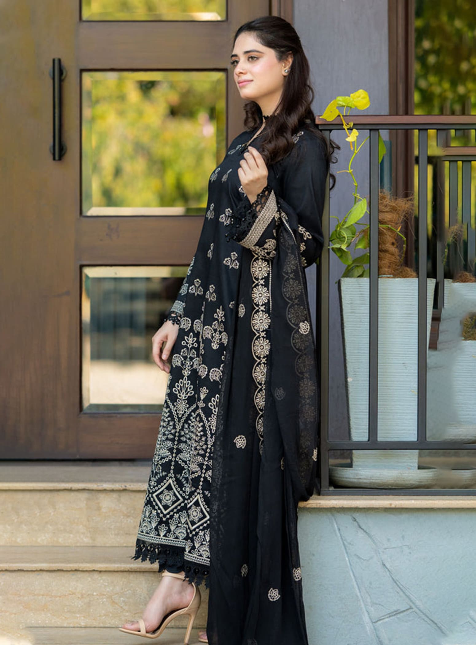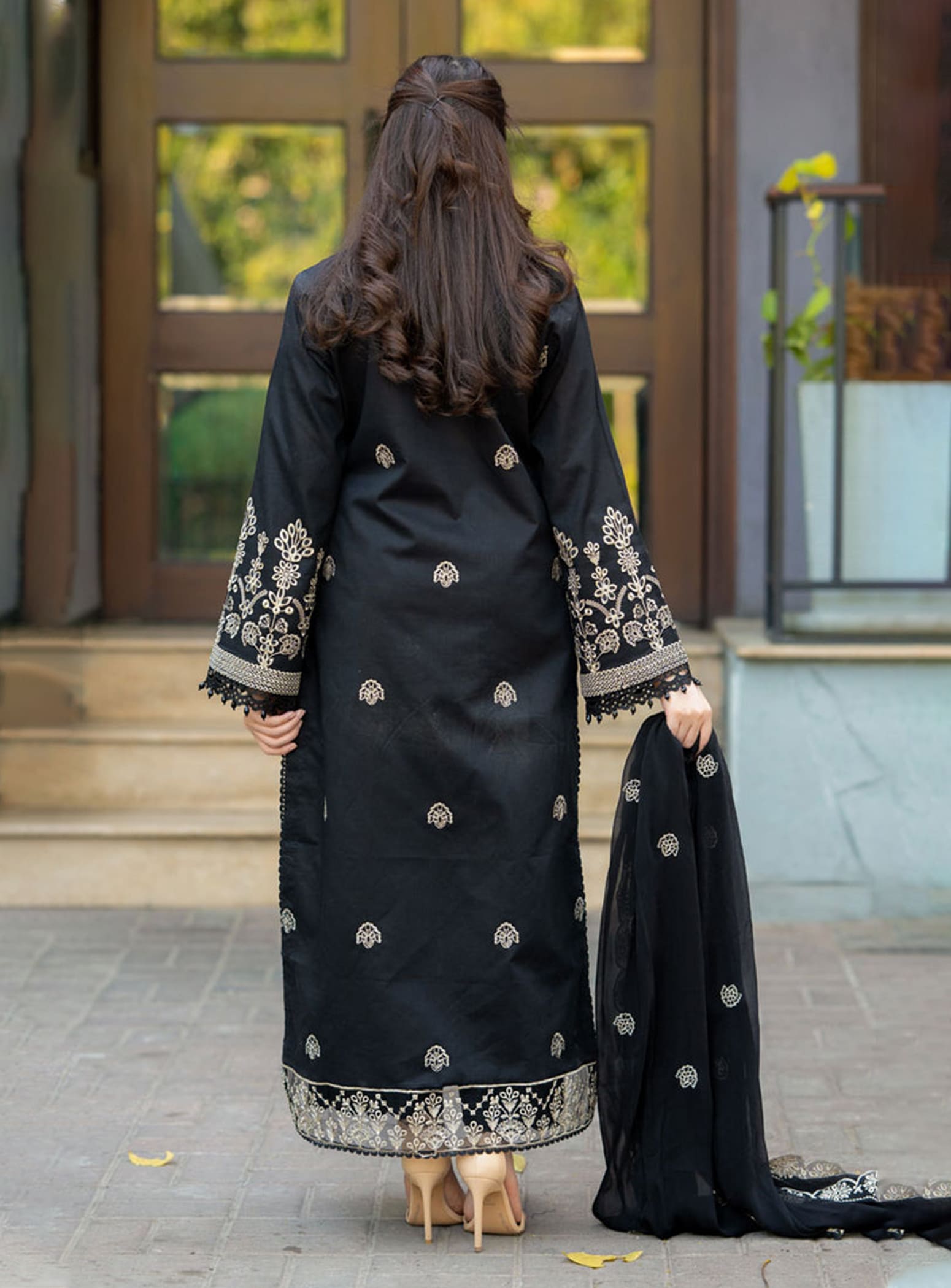 Exude timeless sophistication with our Noir Elegance 3PC Black Embroidered Suit, a perfect fusion of classic beauty and modern grace. Crafted from premium cotton, this elegant outfit features a delicately embroidered long shirt, standard-fit trousers, and a matching embroidered dupatta. Whether for an evening gathering or a graceful daytime look, this stunning piece from Samra’s Collection ensures you shine with effortless poise and charm.