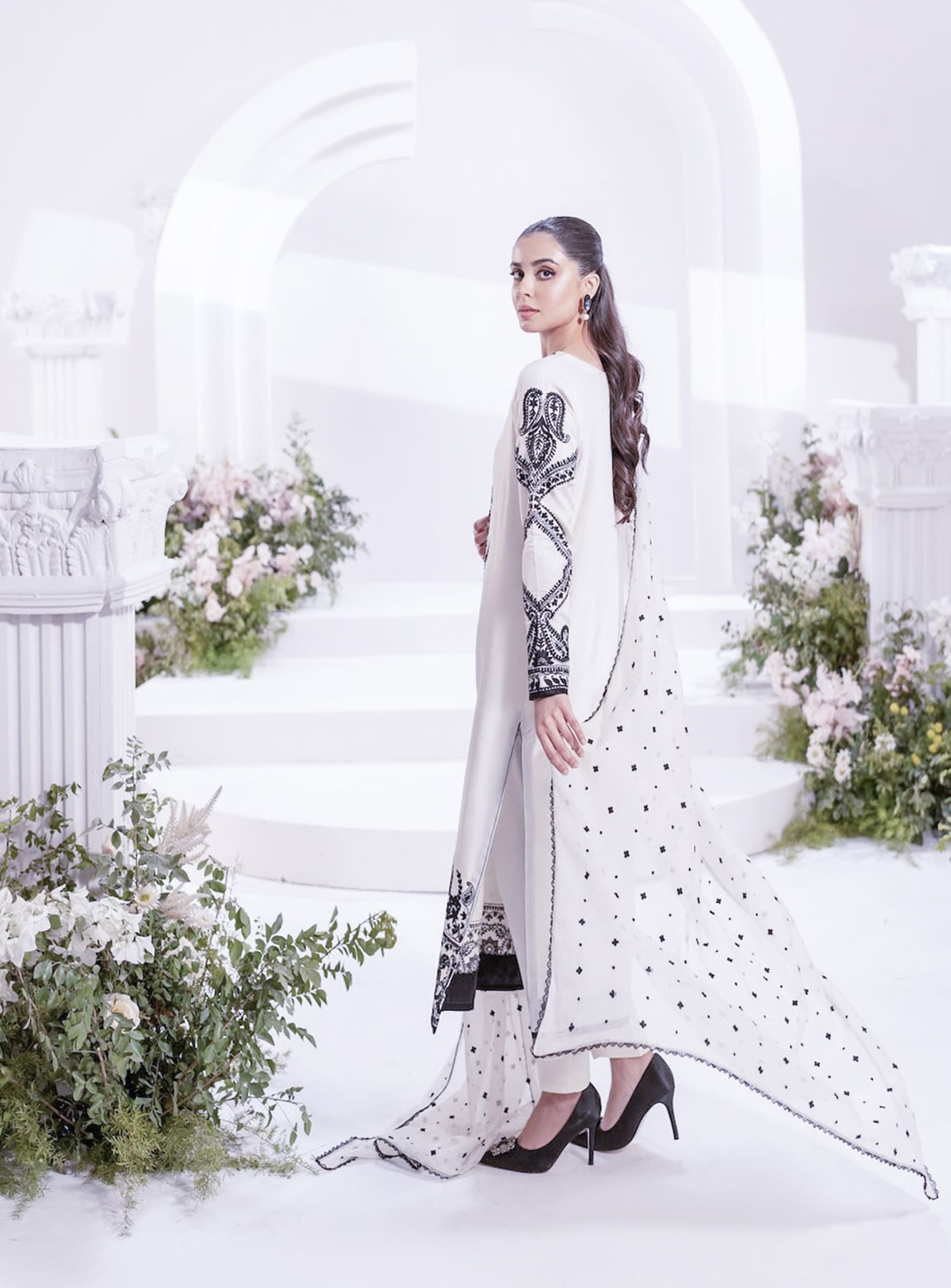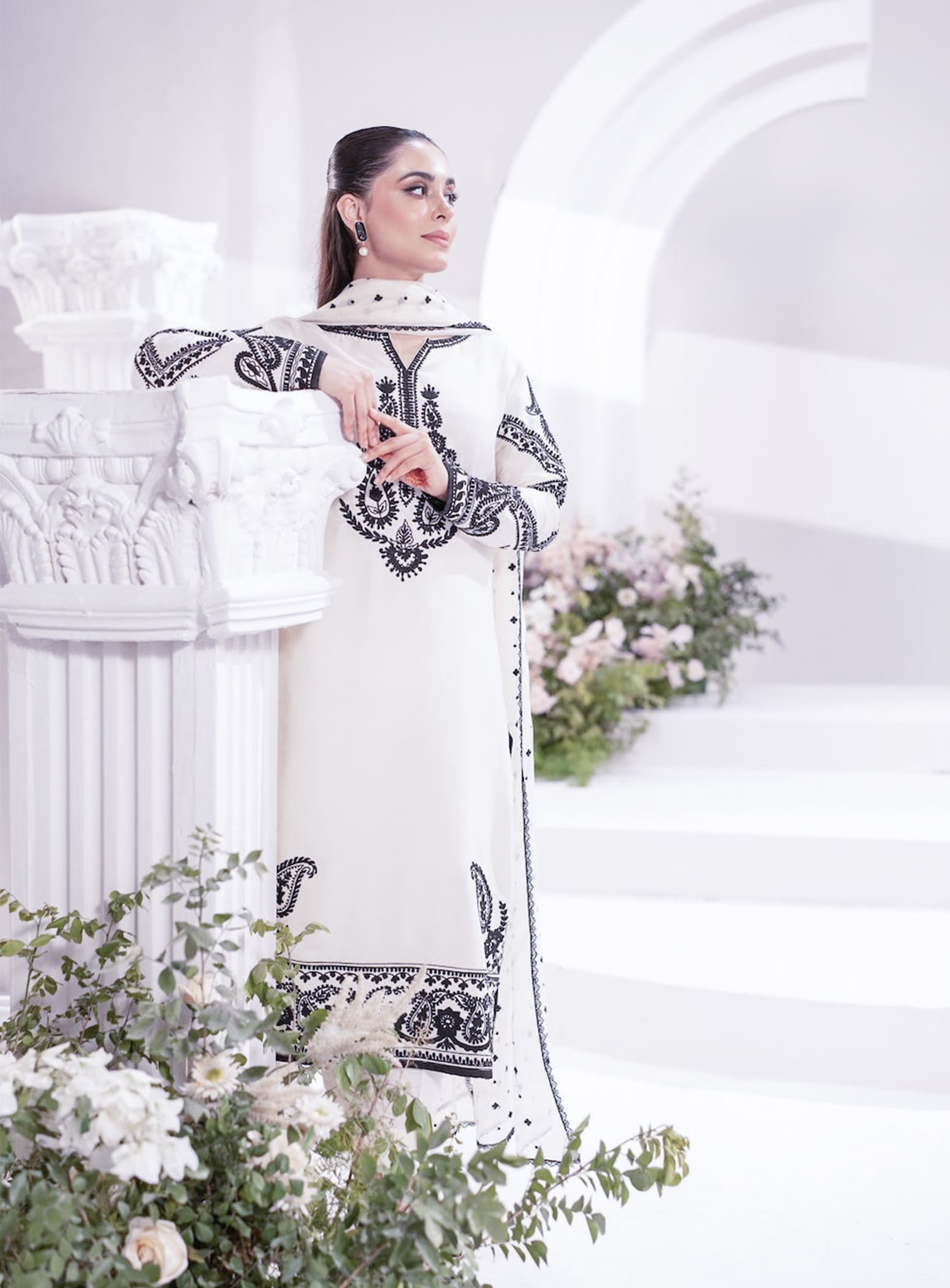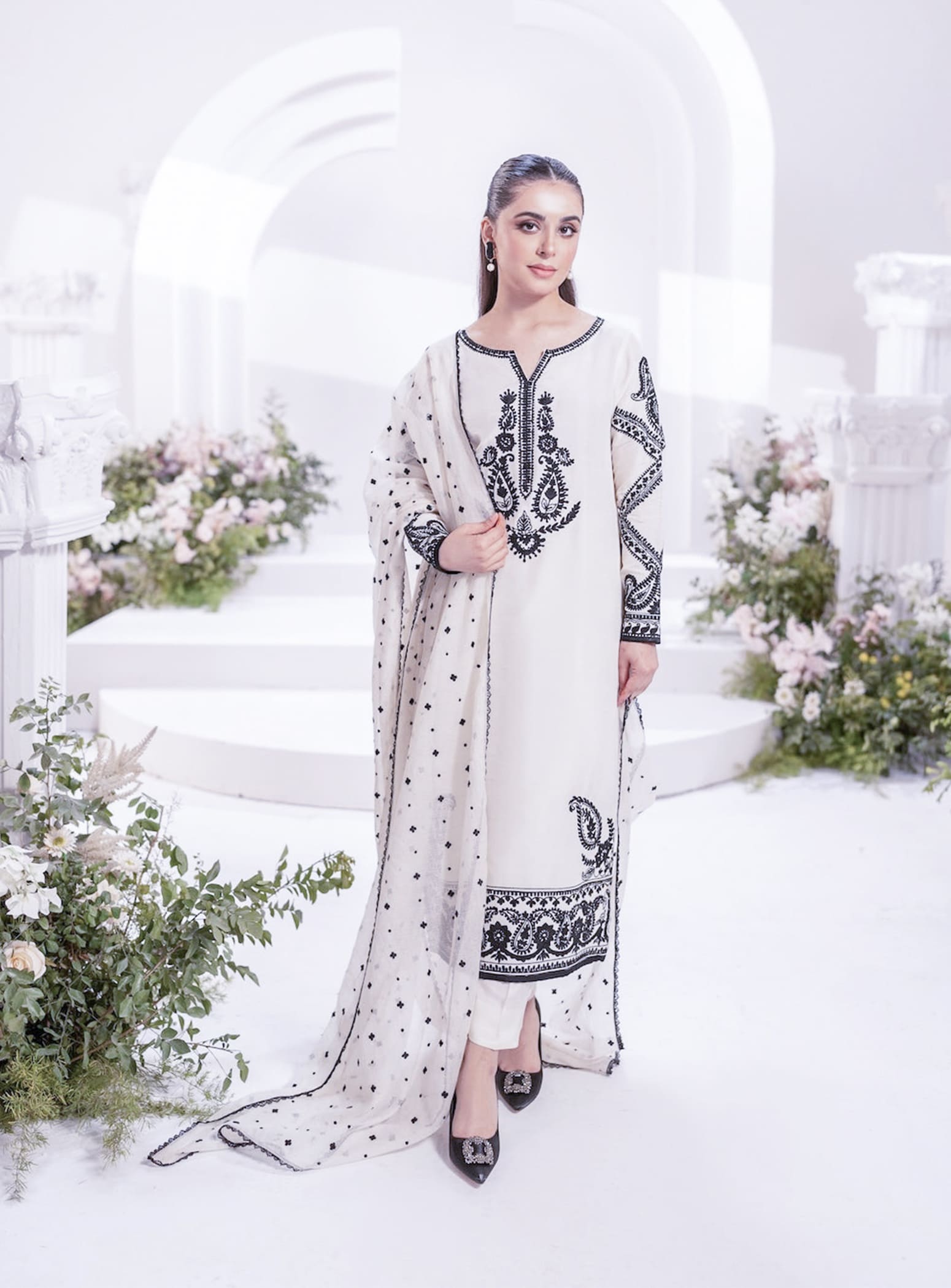 Grace meets sophistication in our Organza 3PC Embroidered Suit, a timeless outfit crafted for women who love subtle elegance. Featuring a white embroidered organza shirt with a soft silk inner, paired with straight silk trousers and a delicate organza dupatta, this ensemble radiates purity and class. Perfect for any season, this outfit combines luxury and comfort, making it a graceful choice for both daily wear and semi-formal gatherings.